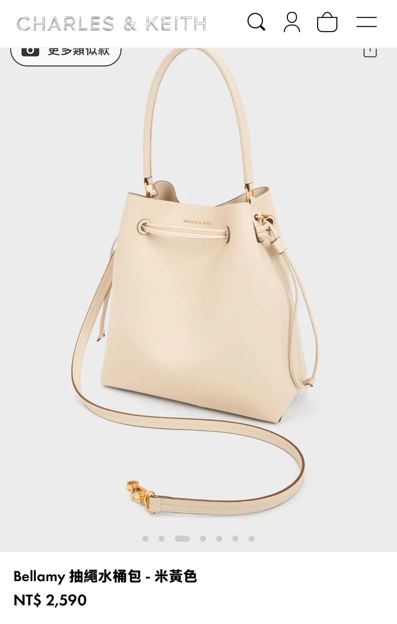 商品名稱:CHARLES & KEITH Bellamy 抽繩水桶包 - 米黃色