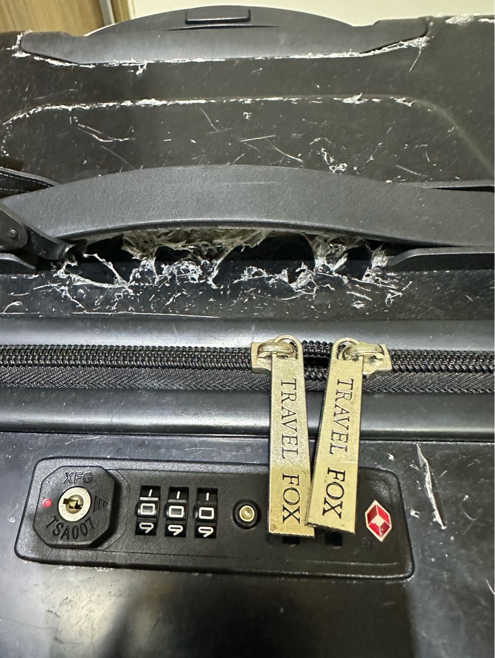 其他功能如拉鍊、收納袋、拉桿、密碼鎖皆完整。