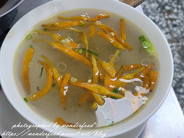 就是一碗鹹鹹的湯上面飄著幾根金針和些許蔥花