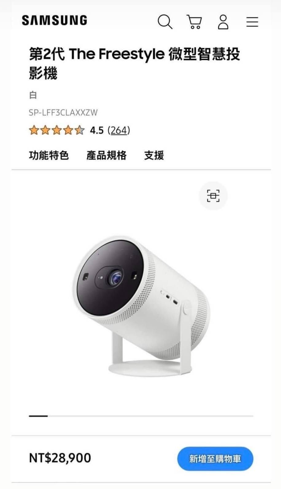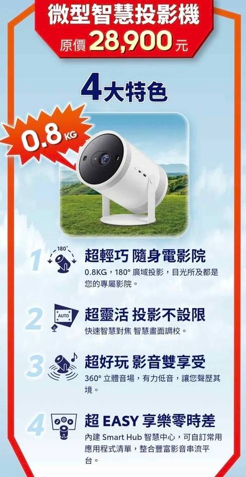 商品名稱: Samsung三星 第二代 The Freestyle微型智慧投影機