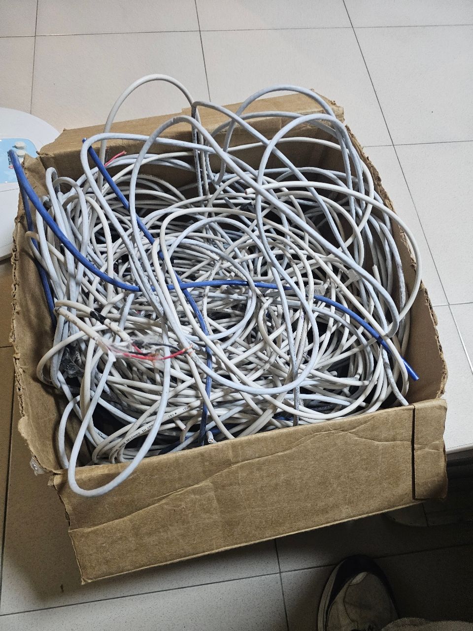 大概50*50*25的箱子 裡面是網路線跟喇叭線(銅)的廢線材 有需要的可以來取走 自取在治磐新村這邊 不然要直接丟給回收車了