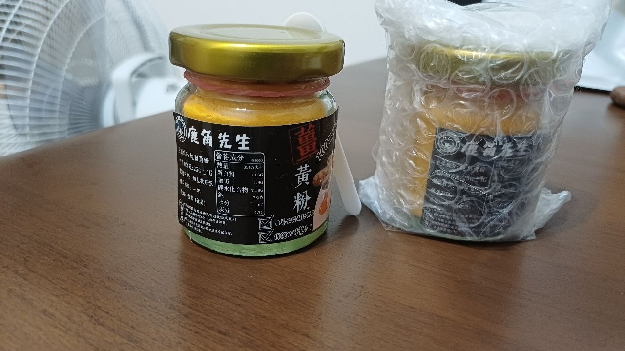 兩罐 未使用薑黃粉 和 ASUS 行動電源