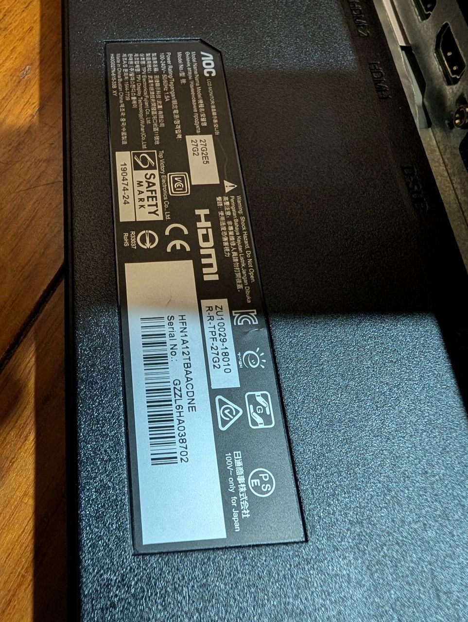aoc 27g2e5 過保固 正常使用換下