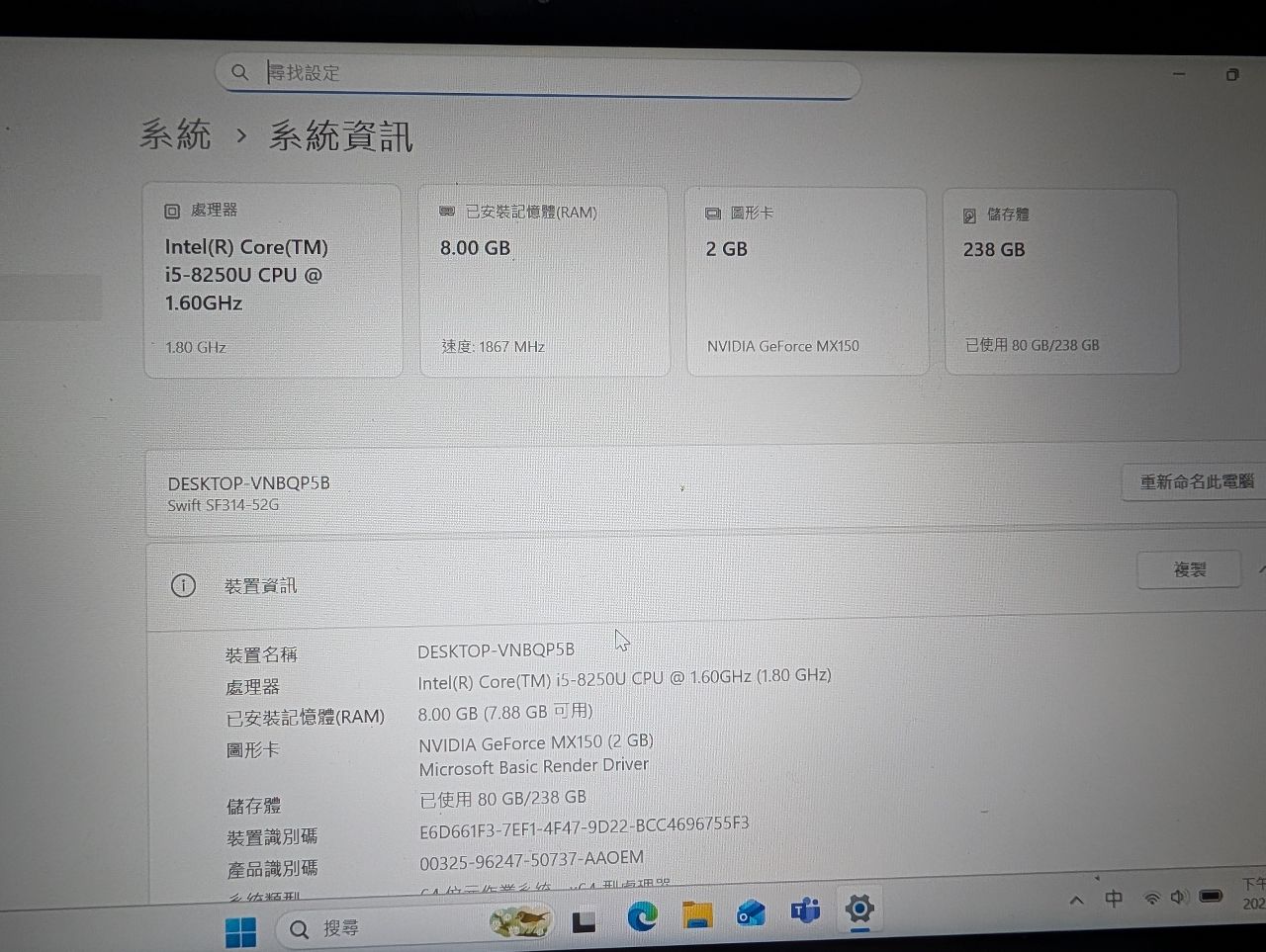 [買賣]acer 文書筆電 8代
