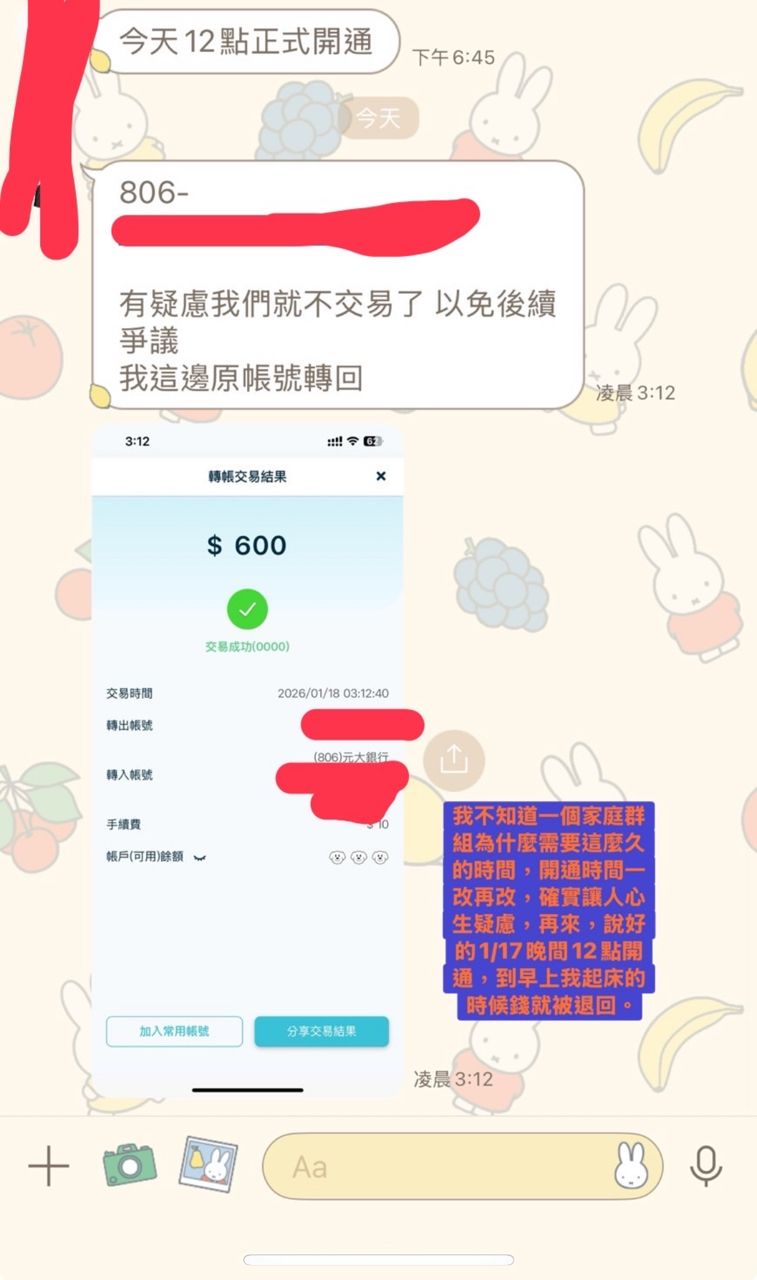 附上申訴方給版主的line對話紀錄始末,礙於隱私,僅提供始末,證明兩造雙方確實有商