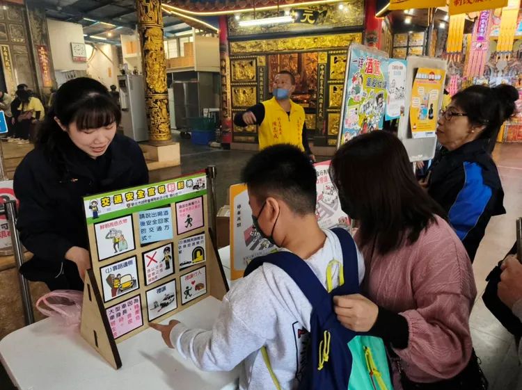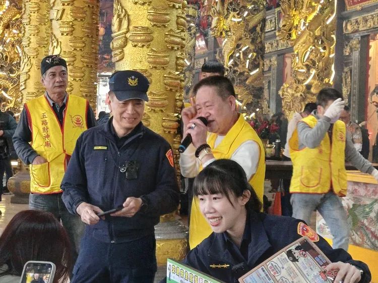 新店警方前往五路財神廟進行道安宣導。翻攝畫面