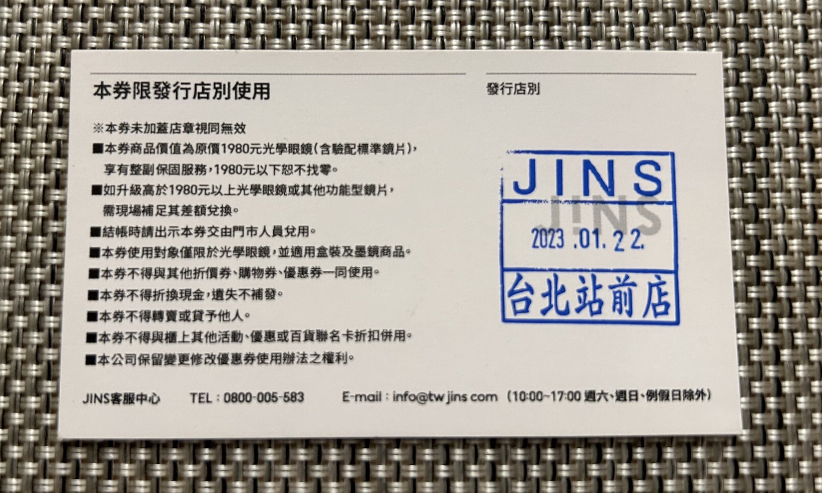 [商業] JINS眼鏡兌換劵&Lady商品抵用劵