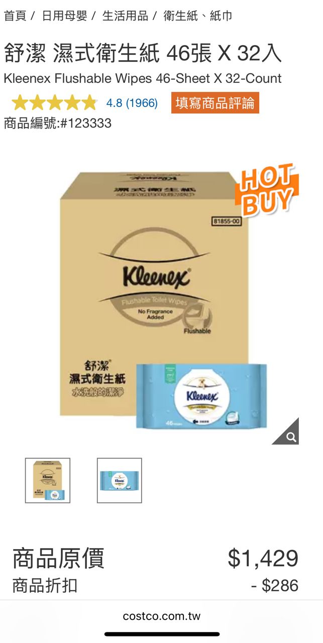 [商業] costco 舒潔溼式衛生紙1箱32入