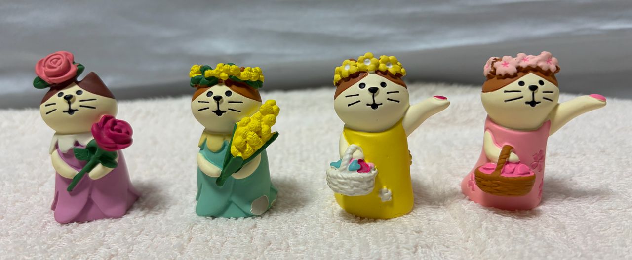 decole貓咪公仔4隻(玫瑰花身上有污點、黃色含羞草有破損,另2隻正常)