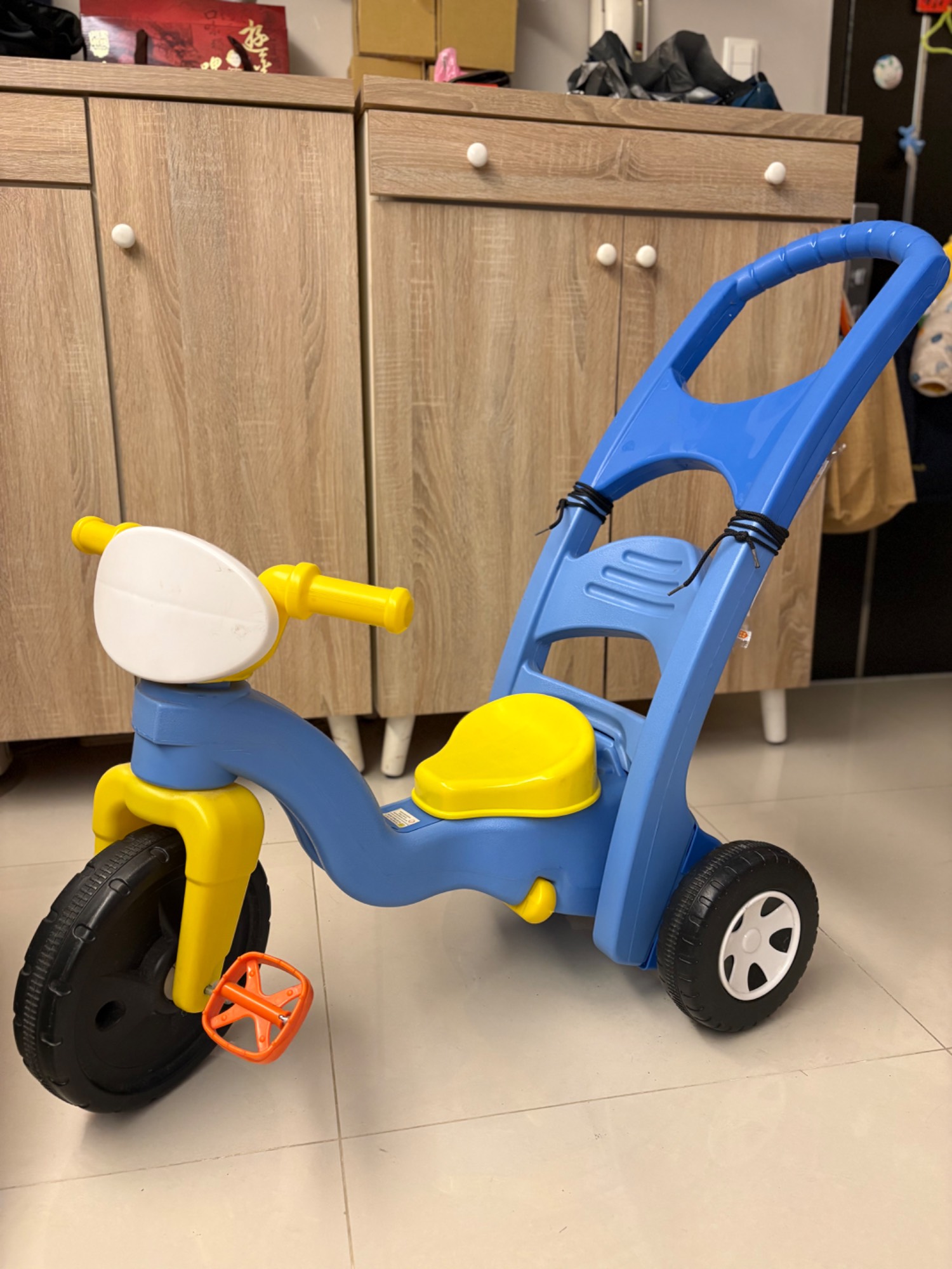 其他:可以當三輪腳踏車騎或是三輪滑步車,也可以當搖搖馬,也可以當手推車,多種用