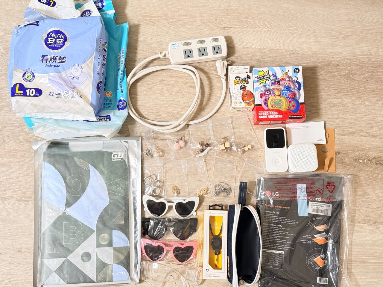 也有用過的)、墨鏡、防塵鏡、手機背袋、筆袋、LG濕拖機器人抹布、電子門鈴(全新但不