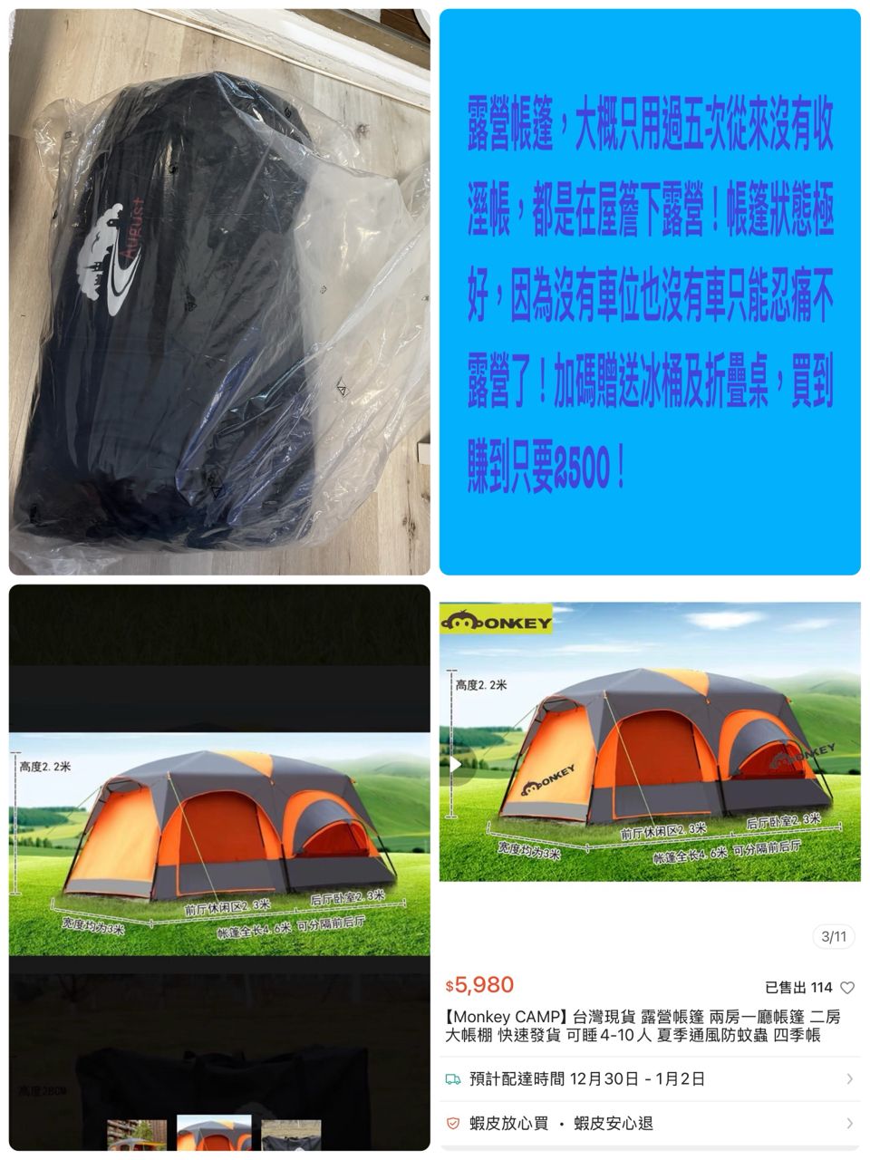 買帳篷只要2500,原價現售5980,送摺疊桌及冰桶