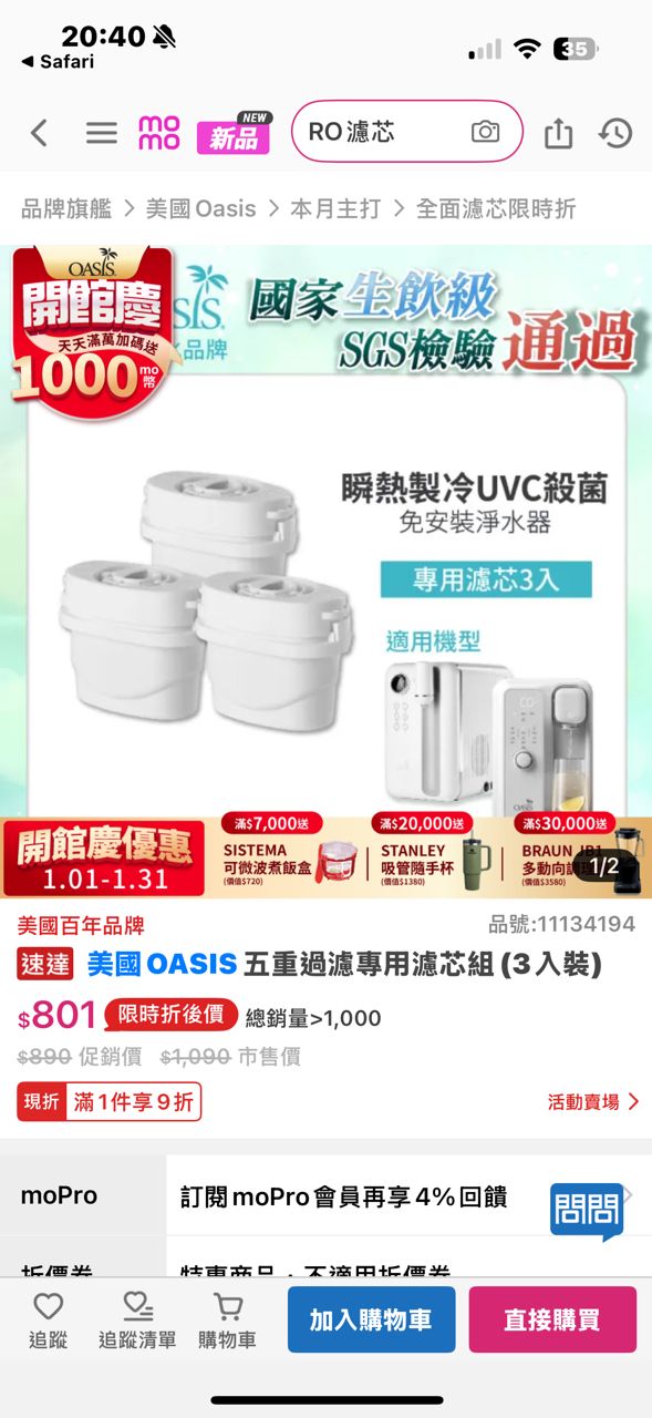 售 美國OASIS 桌上型Curve瞬熱製冷UVC濾淨飲水機 送4個原廠濾芯