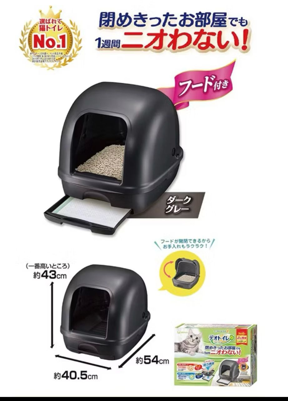 日本【unicharm 嬌聯】全罩式貓砂盆套組 黑色