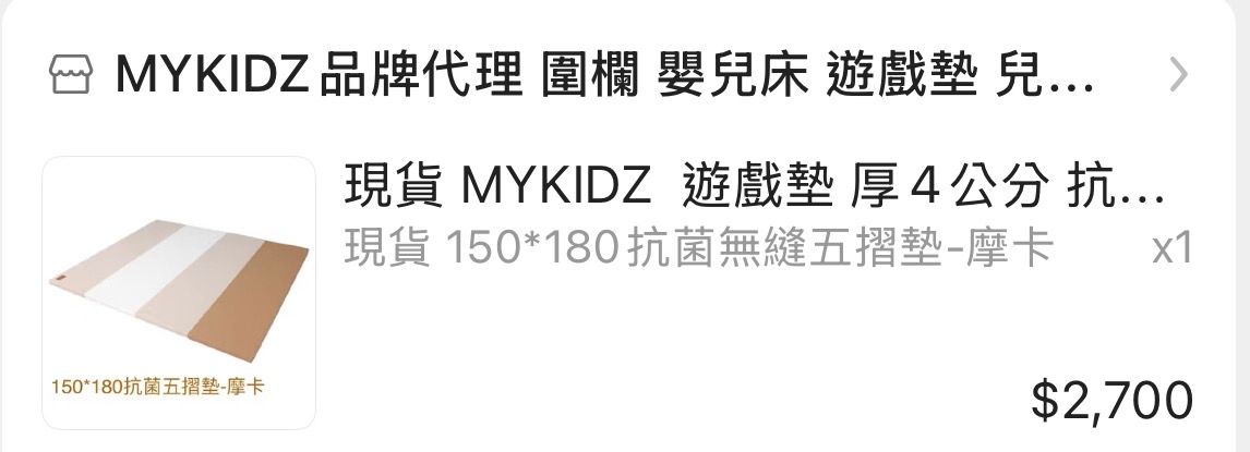 物品:MYKIDZ抗菌無縫五摺地墊