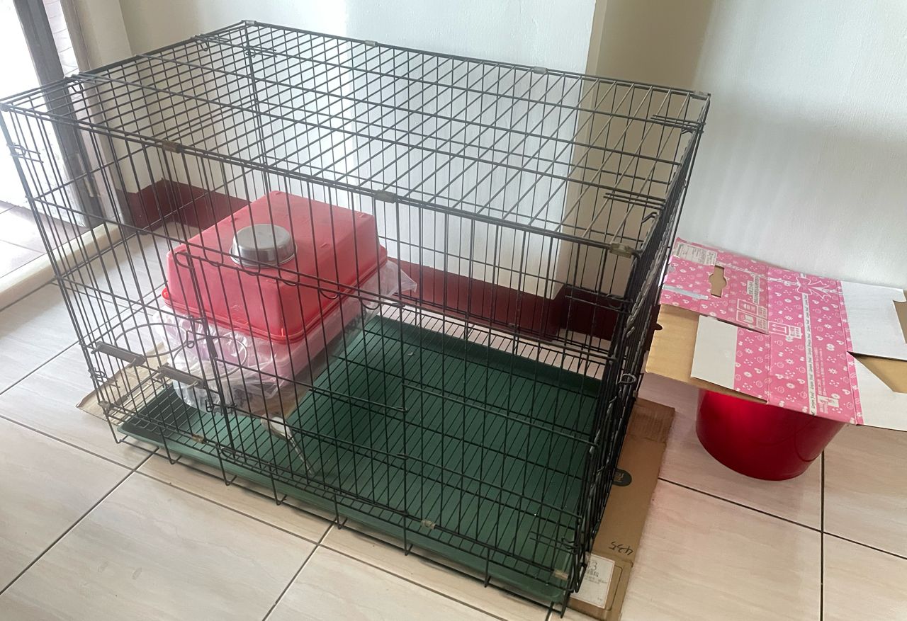 3、三尺折疊貓籠(都放室內,但還是有一些地方小脫漆,請連同碗架跟不鏽鋼碗、兩個