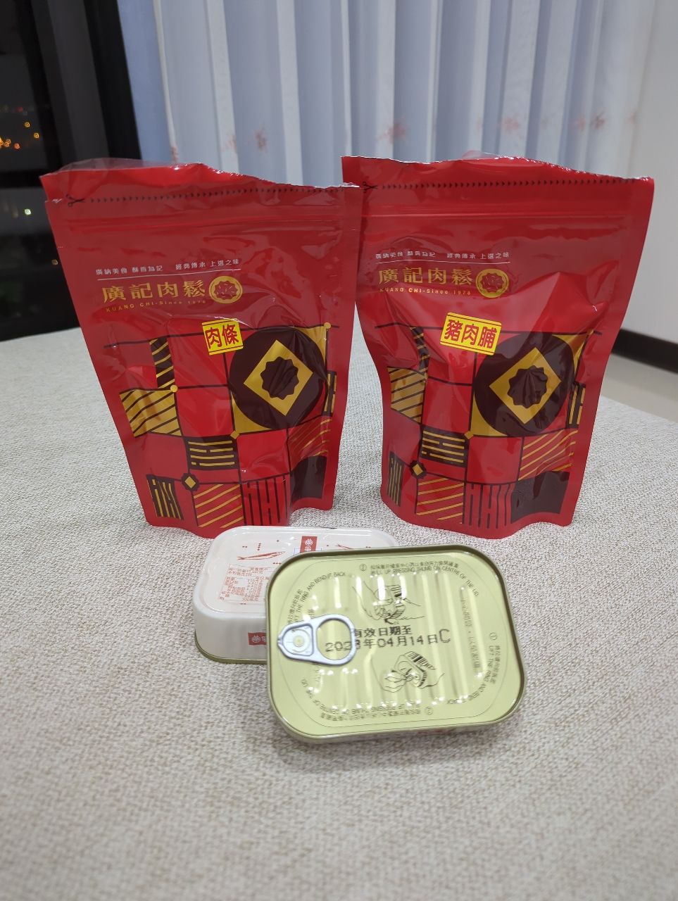 物品名稱:廣記肉鬆的肉條、肉脯、柳葉魚罐頭