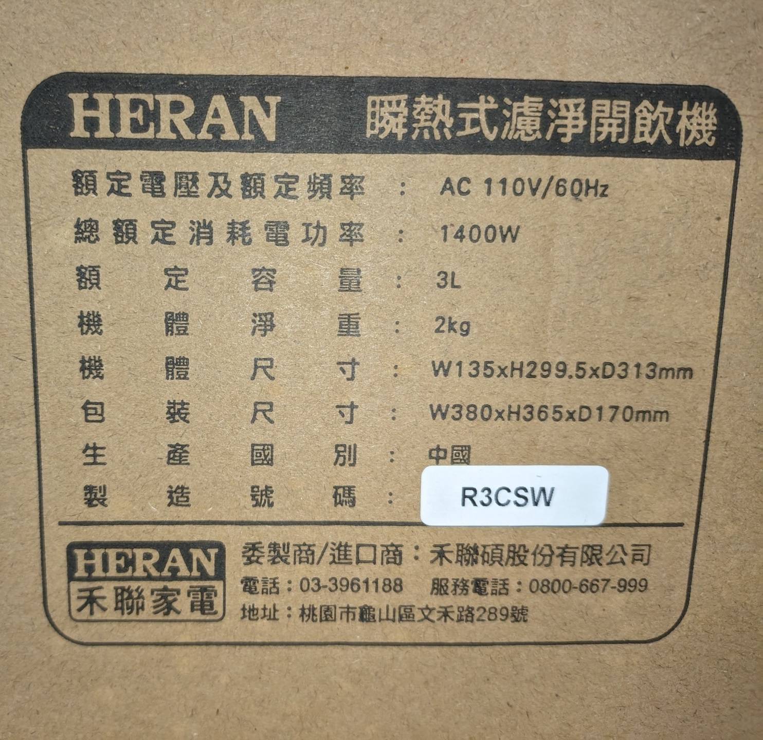 [交易] 西屯/全新 禾聯HERAN 開飲機(歡迎議價)