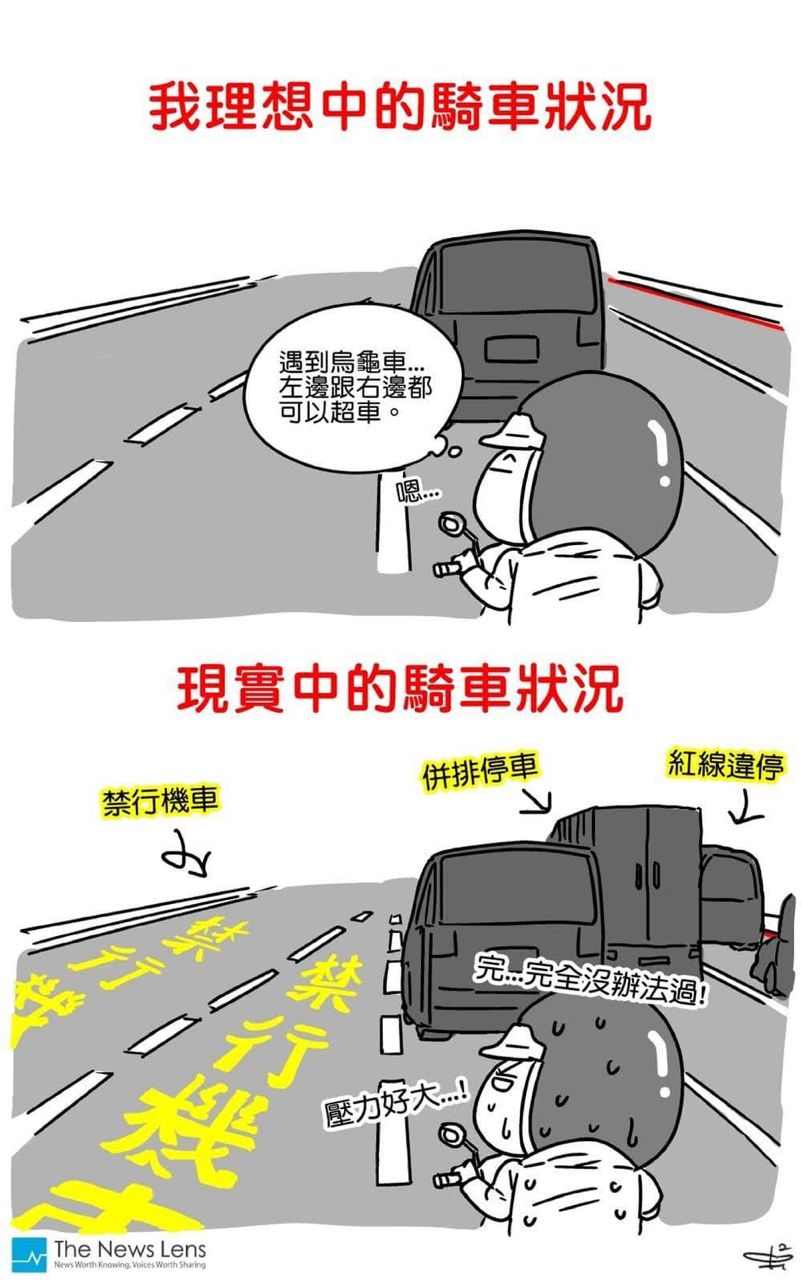 自己會按喇叭提醒,好一點的會回頭看,其餘不當一回事,在前方依然故我繼續超車。