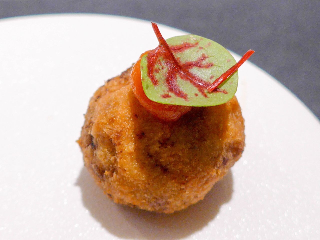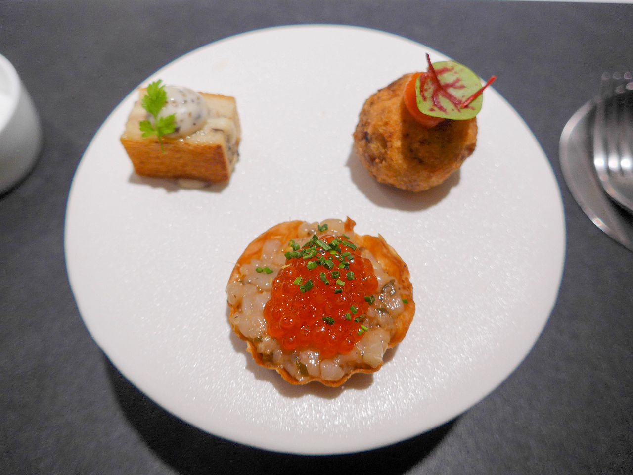 有海鮮塔塔、義大利松露三明治、米欄炸牛肉丸三樣