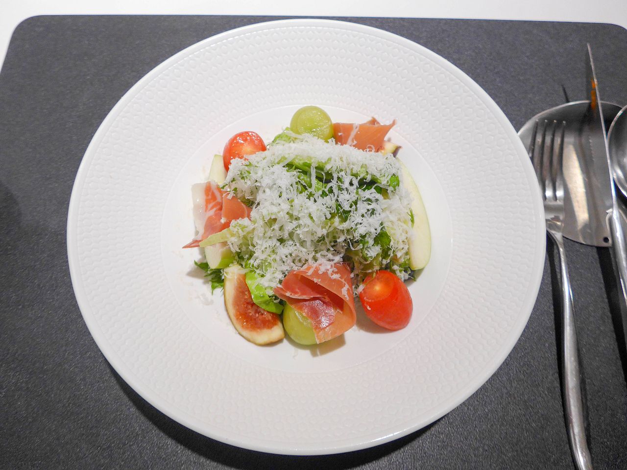 搭配著鮮甜無花果、綠葡萄、酸酸的番茄和爽脆生菜,