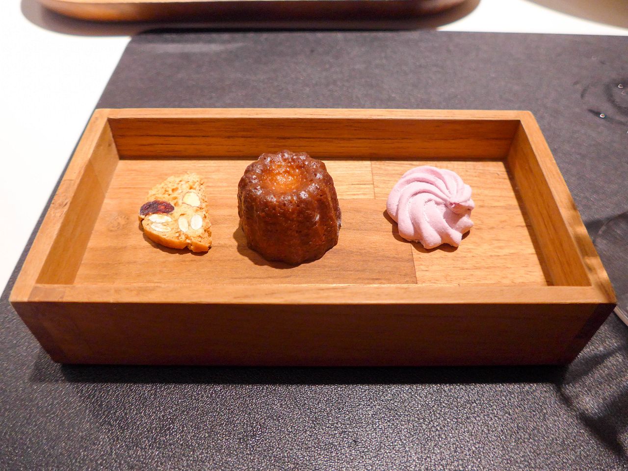 從左至右分別是義式脆餅、可麗露、莓果軟糖,