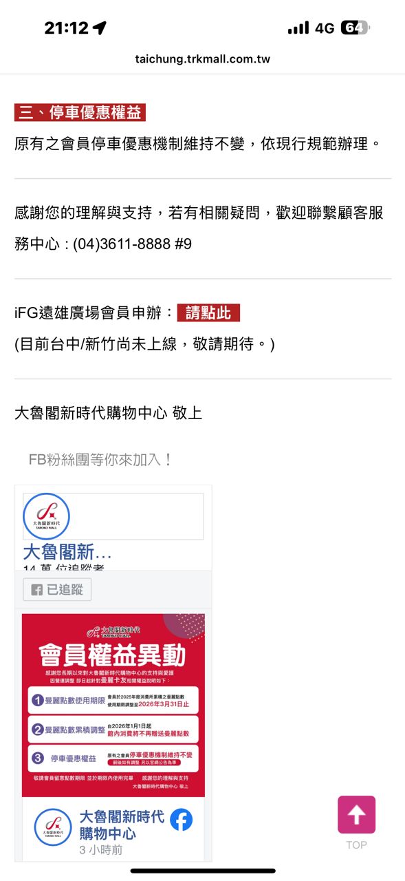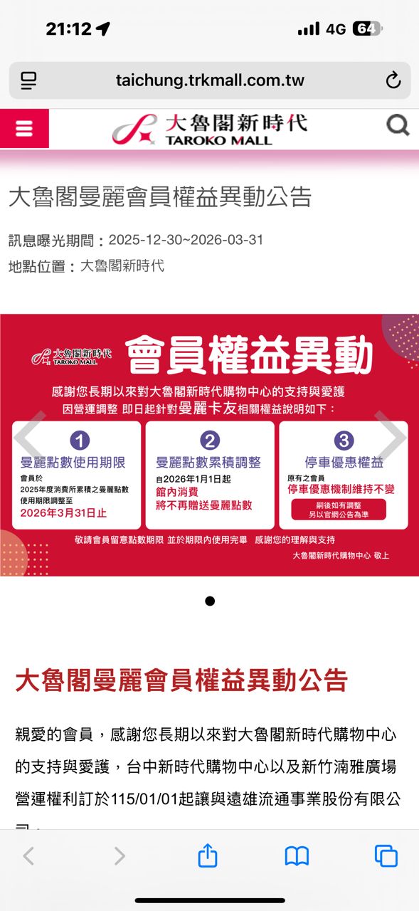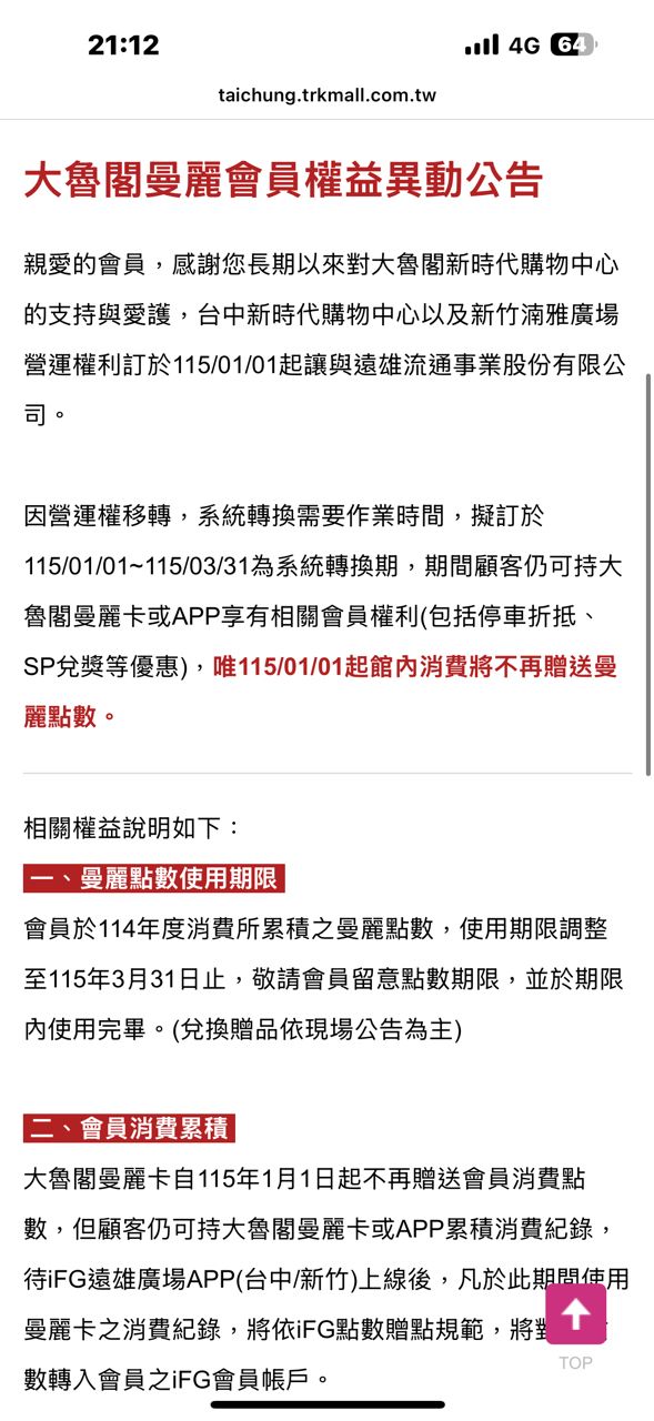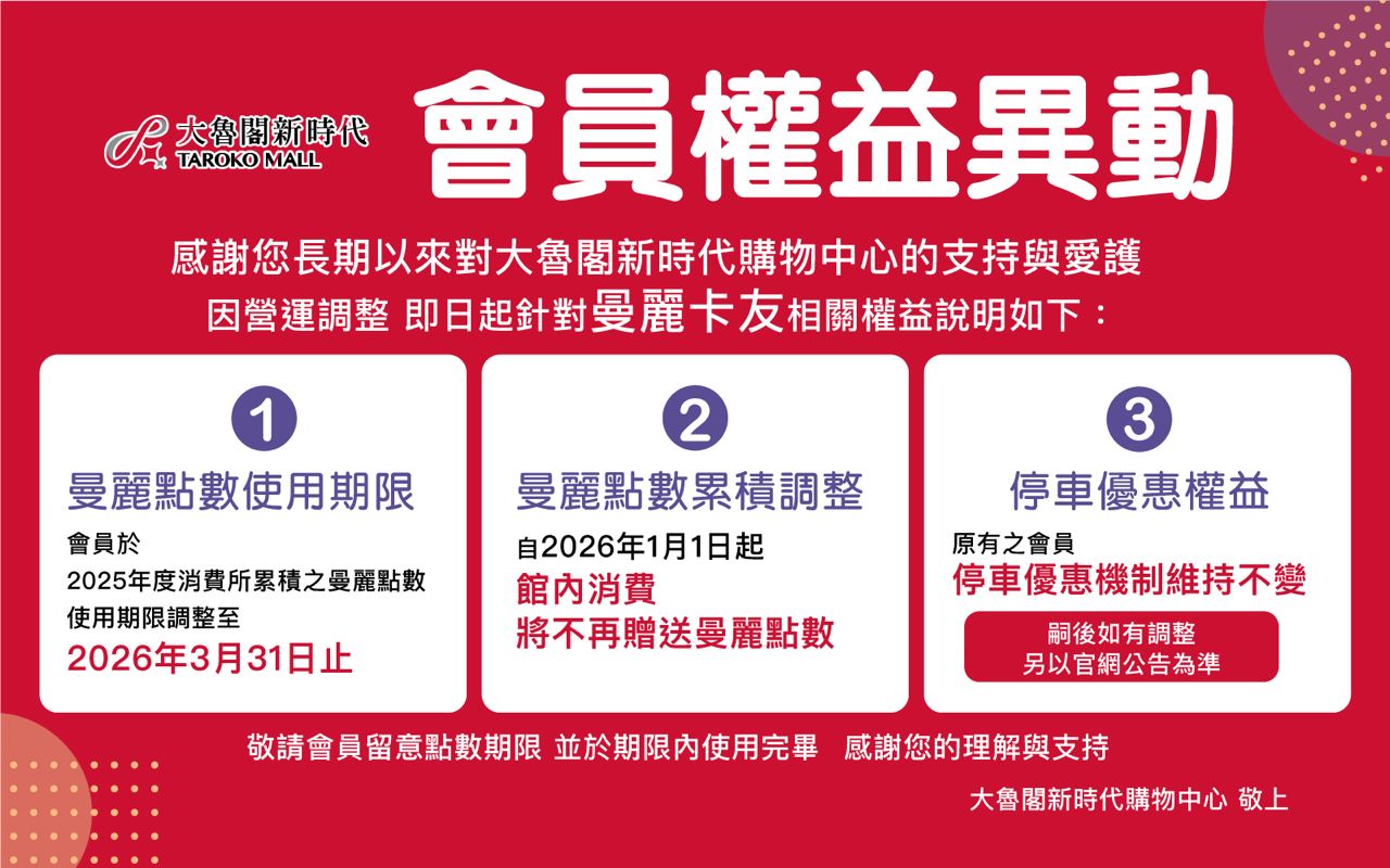 [資訊] 大魯閣新時代曼麗會員權益公告