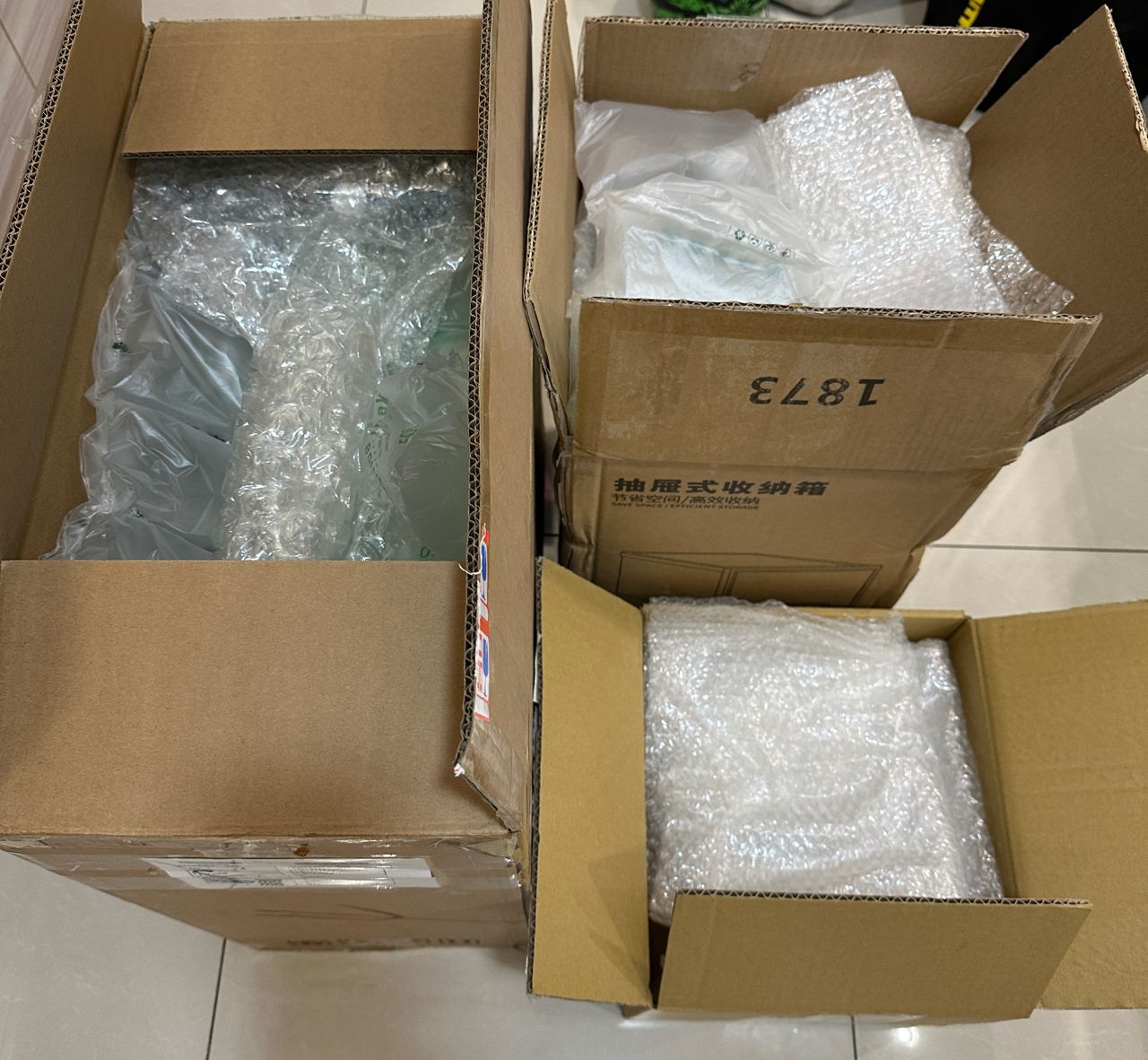 物品說明:防撞包材三箱,兩大一小