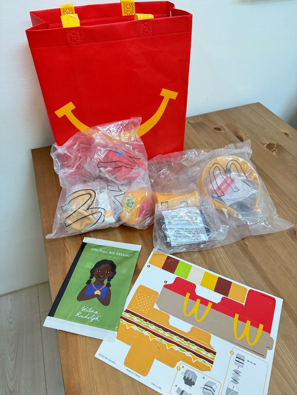 贈繪本和摺紙的漢堡,麥當勞袋子也一起贈送