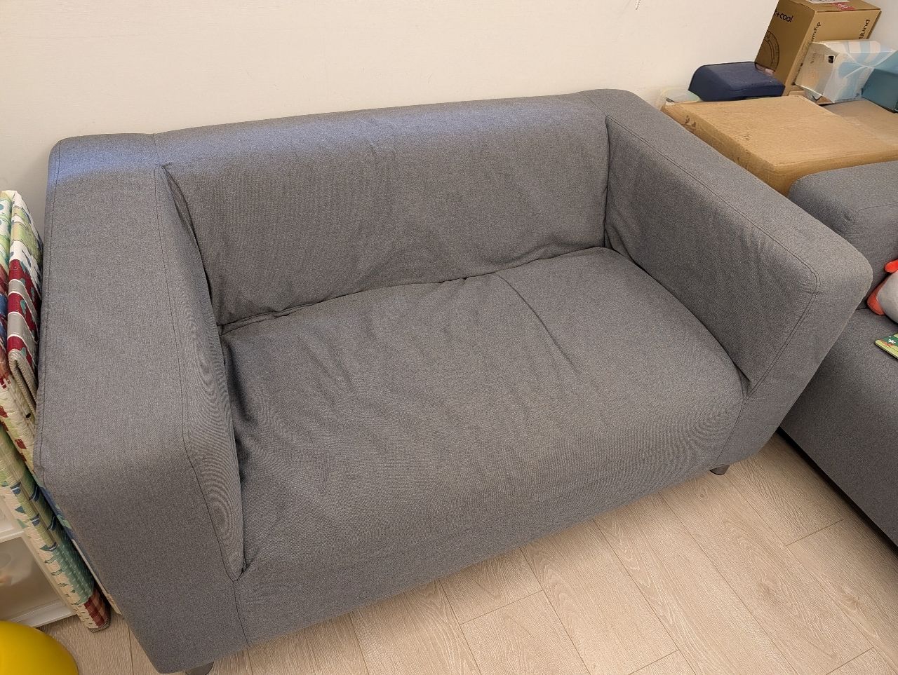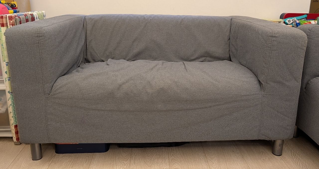 更換,雙人座都拿來放小孩玩具,狀況良好(只有微微畫筆痕跡,看不太出來,沙發椅套