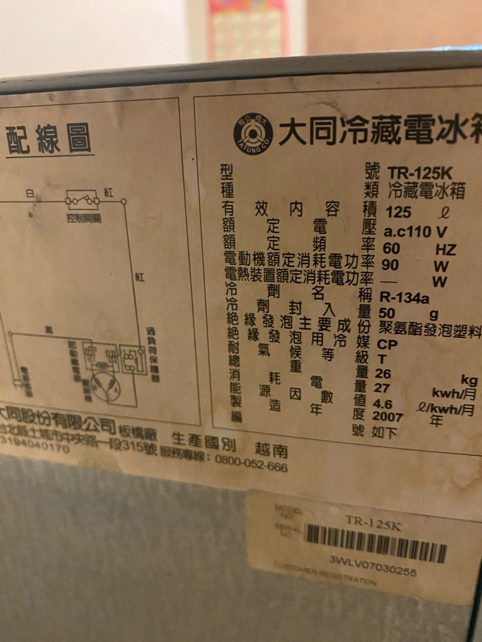 [交易]西區 二手大同單門冰箱 125升