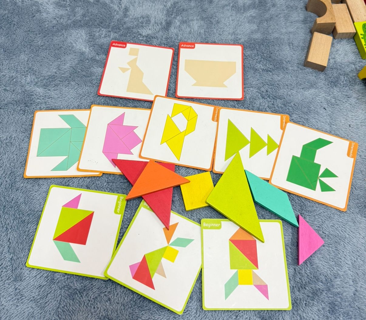 裡面還有包含這種平的積木,和小卡片(正反都有不同積木拼成的形狀,孩子喜歡挑戰)
