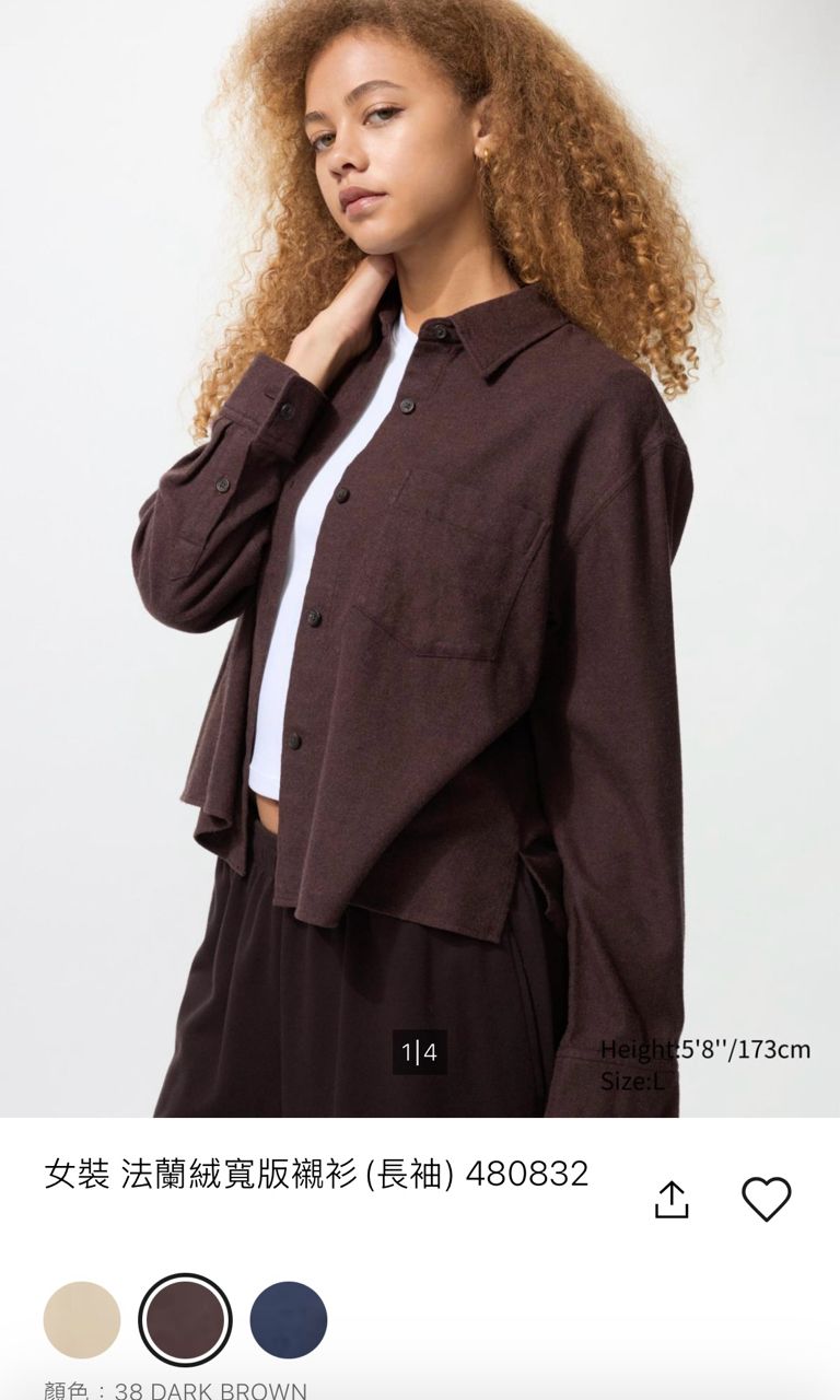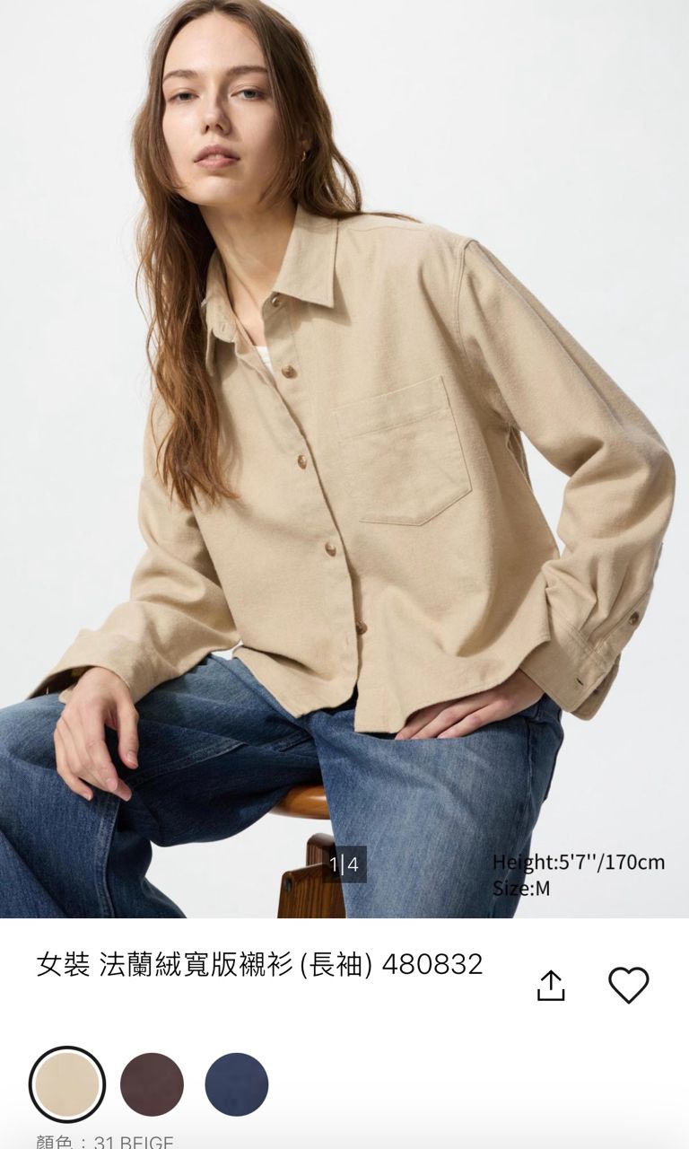 2. Uniqlo 女裝 法蘭絨寬版襯衫(長袖)480832