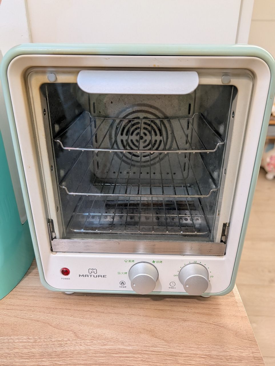 後來都只使用火烤功能,功能很正常,溫度雖然不能調整,但回烤個吐司、可頌之類的小