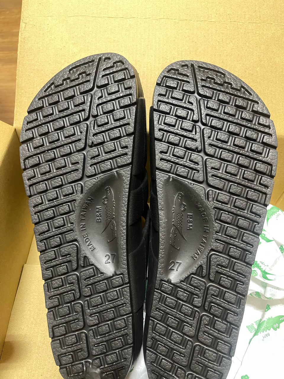 3.(全新)母子鱷魚拖鞋。男款。尺寸27。黑色