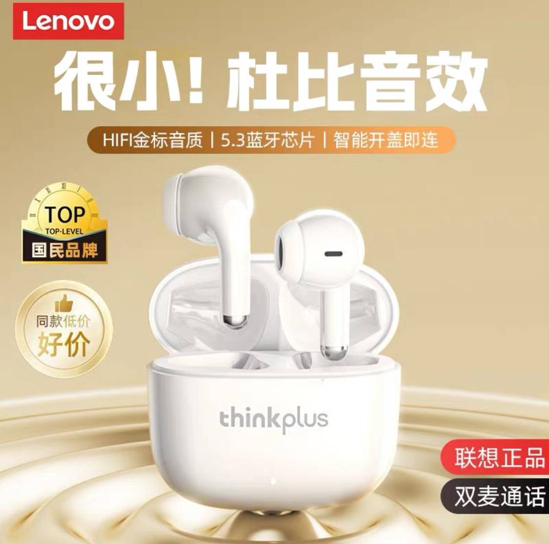1. 聯想藍牙耳機LE208 至甄版 米白色 售360元