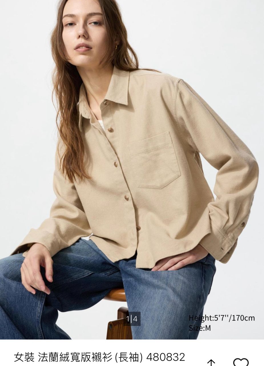 2. Uniqlo 女裝 法蘭絨寬版襯衫(長袖)480832