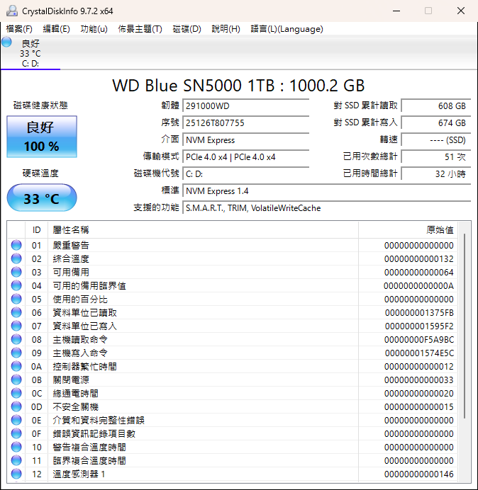 -WD Blue SN5000 NVMe SSD 1T Pcle M.2 固態硬碟