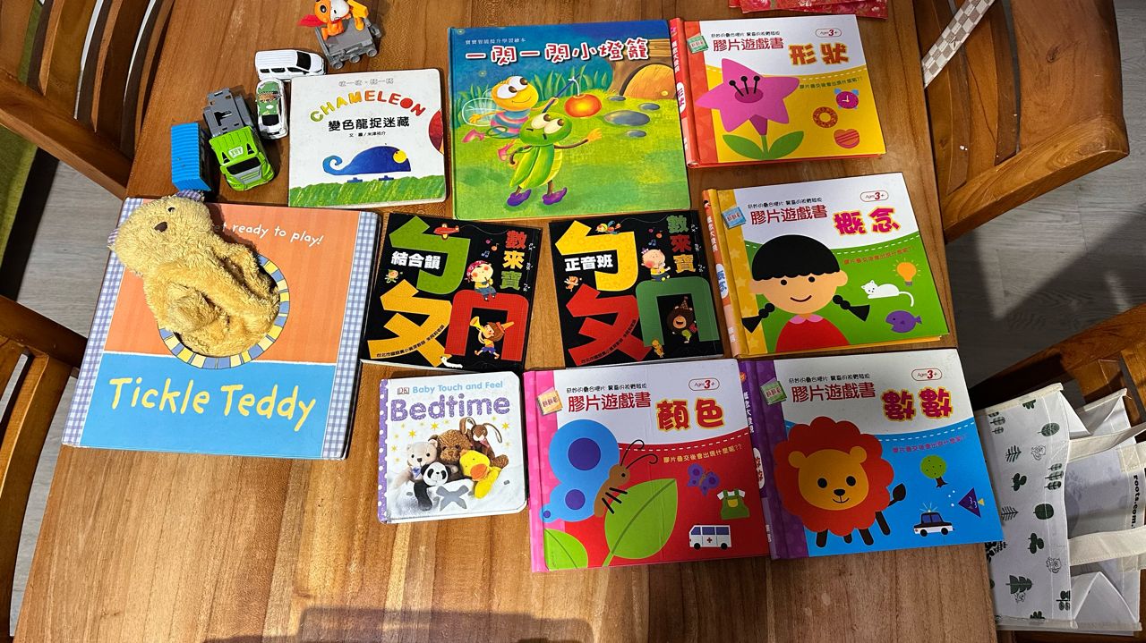 有膠片書、布偶書、觸感書等 全部一次帶走100元,右上角車車一起贈送 --