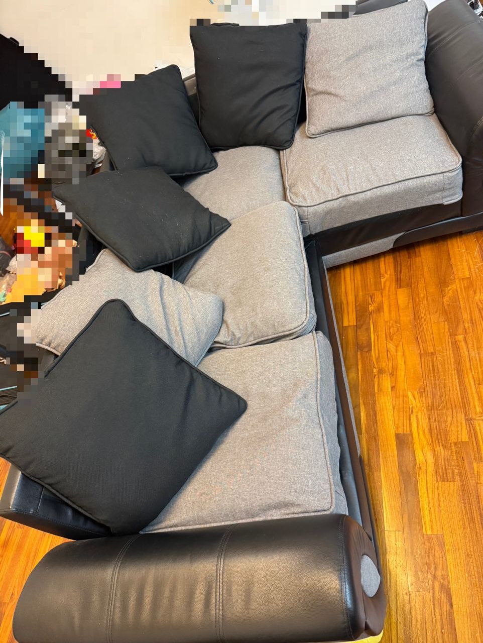 L沙發椅/收納櫃/灰黑抱枕全贈