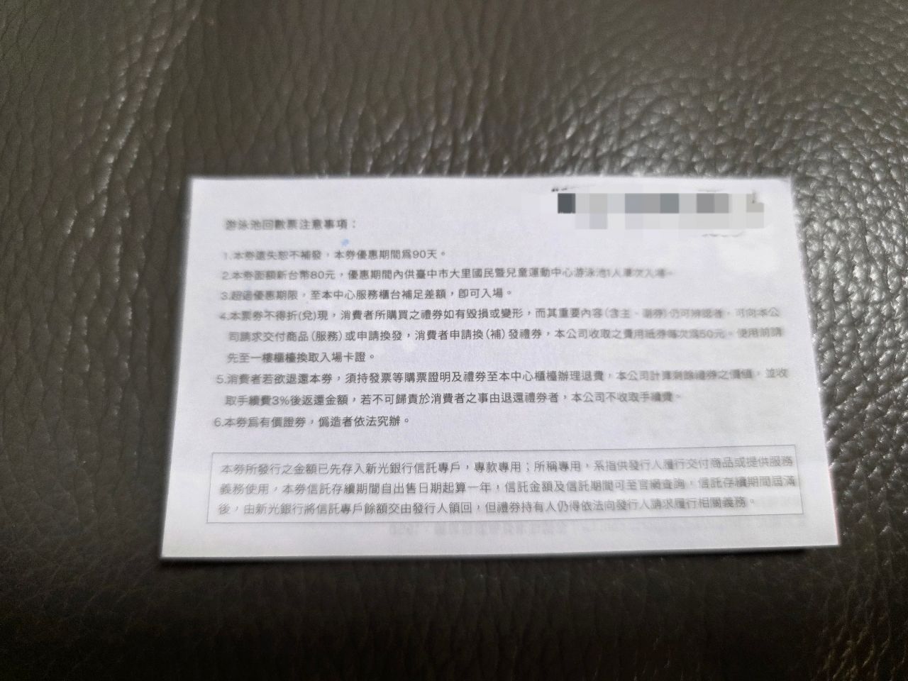 [交易] 大里/大里運動中心游泳回數票