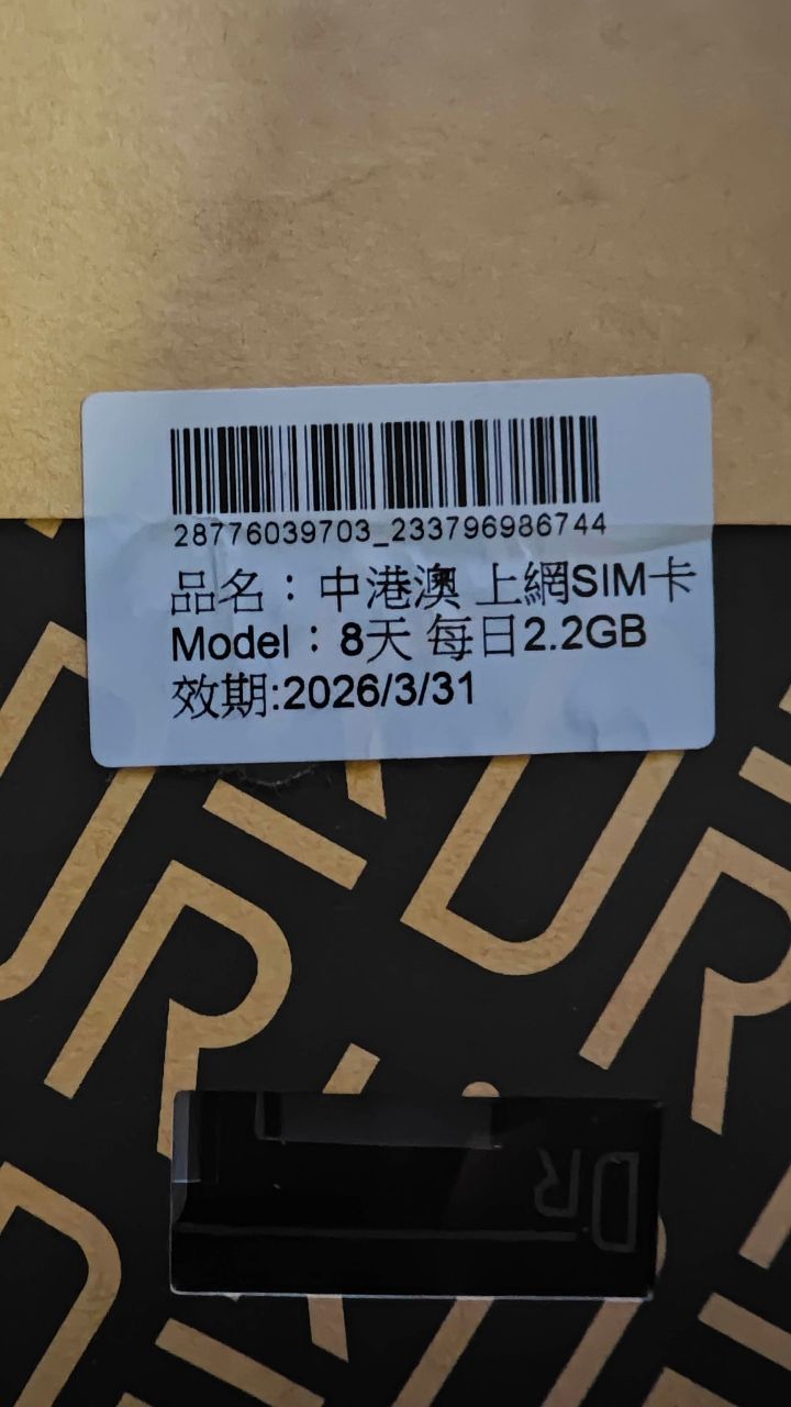 [交易] 中港澳網卡8天*2.2G