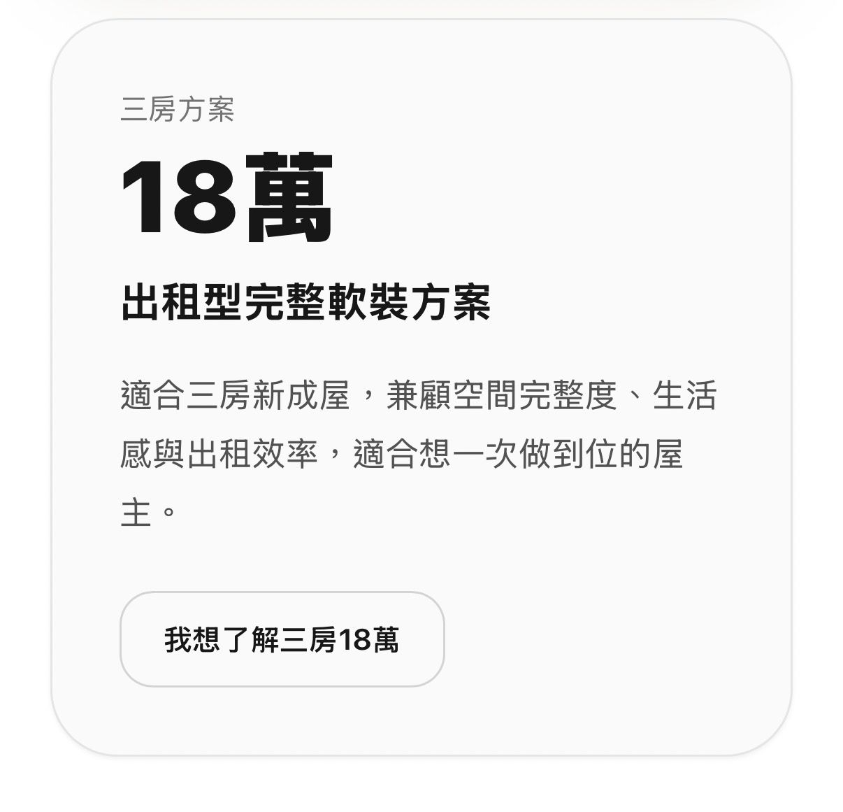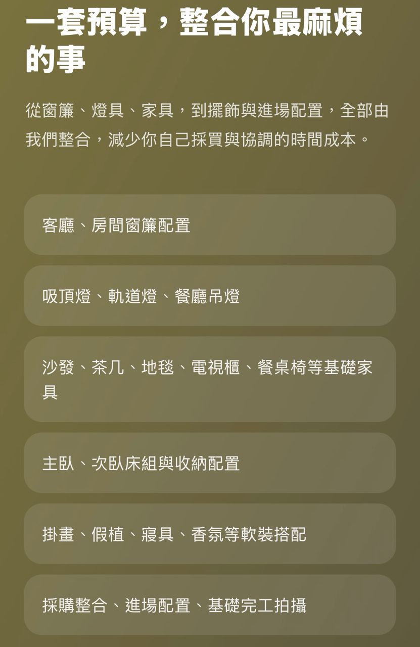 的客人也很需要這種完全不會有額外費用的包套裝修服務,這樣算投報率才方便!而且不