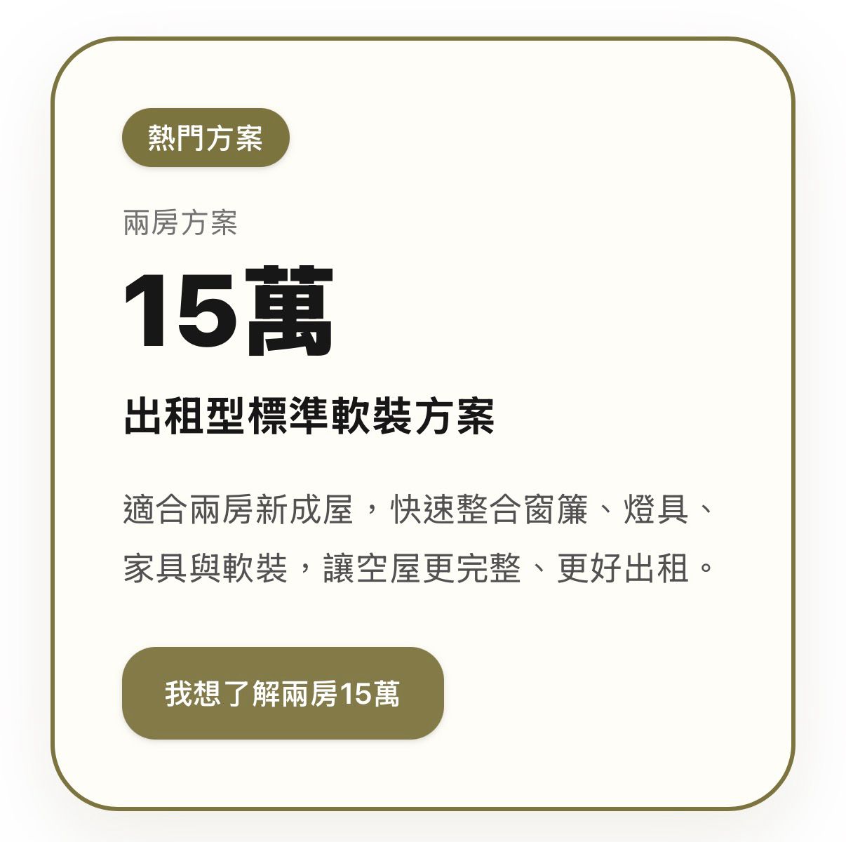 兩房 NT$150,000 / 三房 NT$180,000