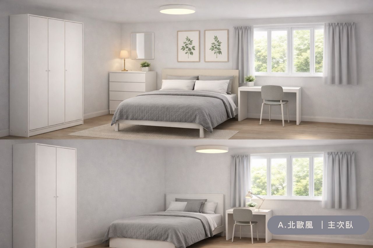 我自己去 IKEA 買沙發,去家具行買床組,蝦皮買軟裝品,還去各個家具店逛出清品…