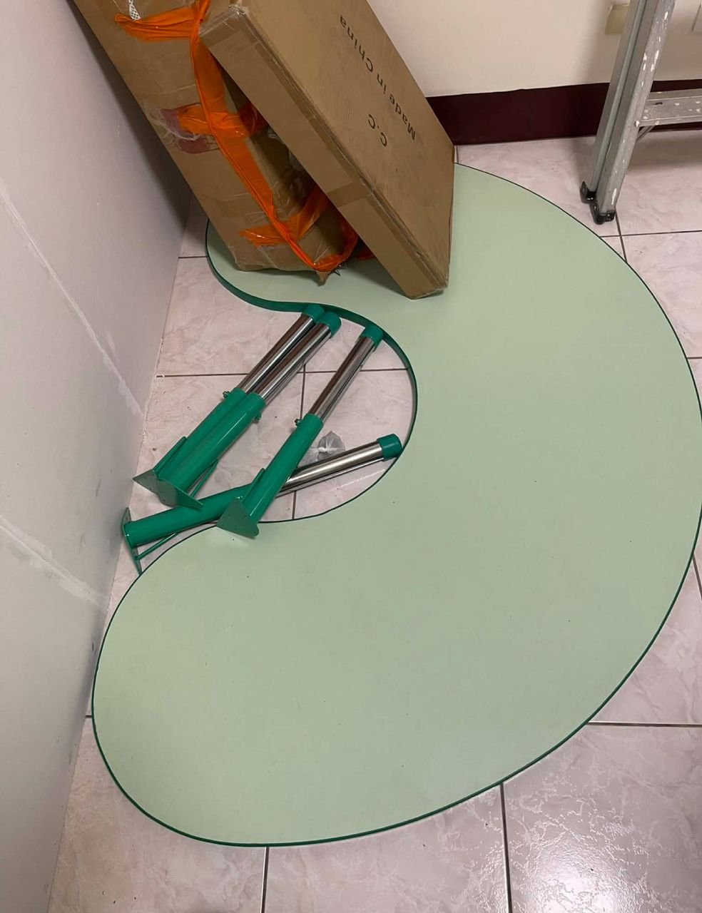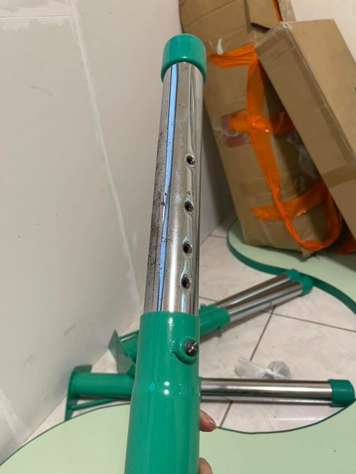也沒使用過,一直收著,後來某天發現桌腳有鏽斑了