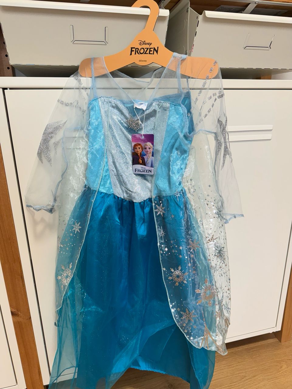 物品B/價格:【售$100】全新,冰雪奇緣Elsa洋裝M號,僅打開看過,亮粉會掉,介意者