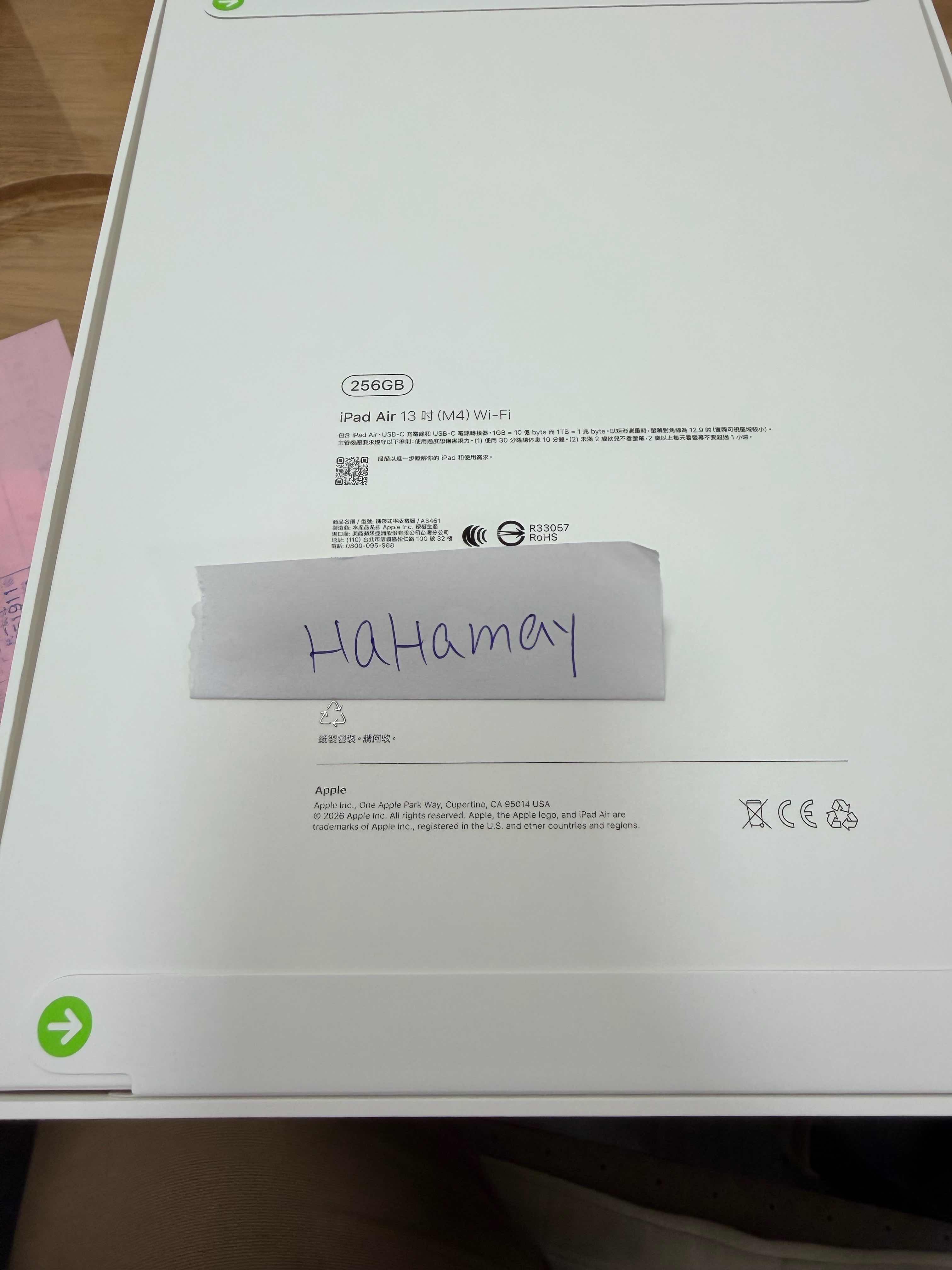 [型號] iPad Air M4 13" 256G WiFi 紫