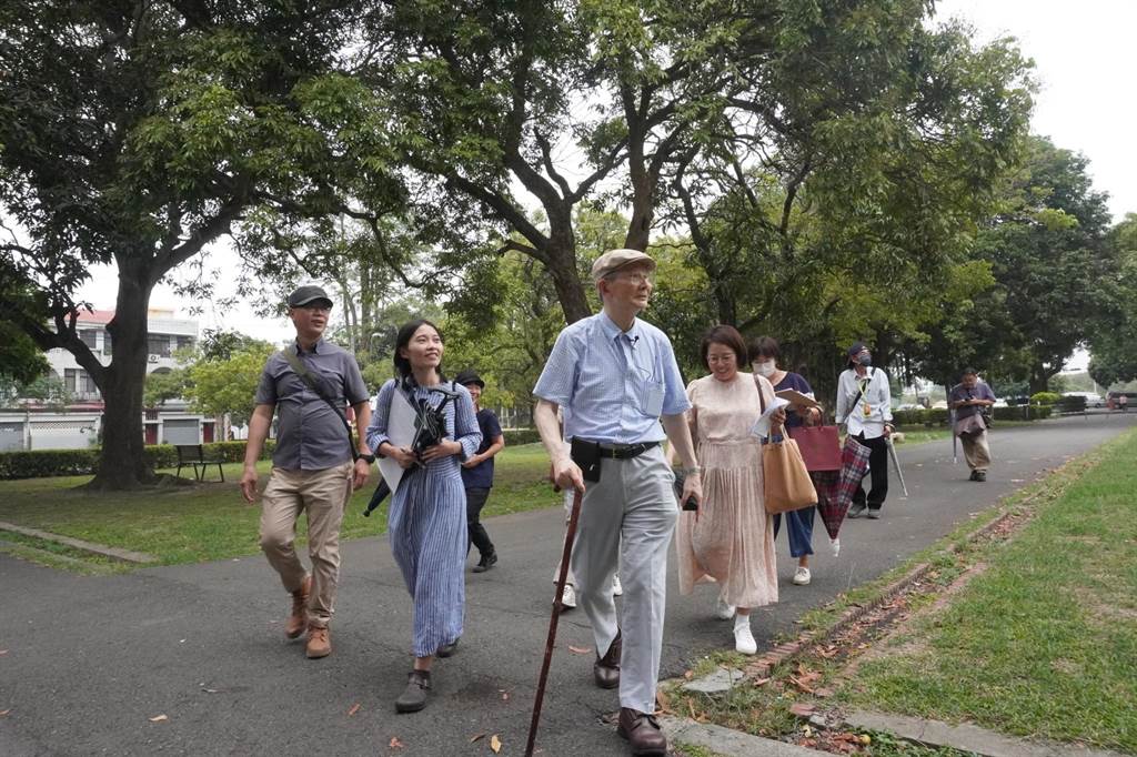 高齡92歲的日籍灣生新元久(左三)訪兒時故鄉總爺糖廠。