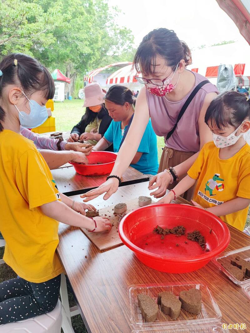 走馬瀨牧草節現場還有牧草捲的親子活動。(記者吳俊鋒攝)